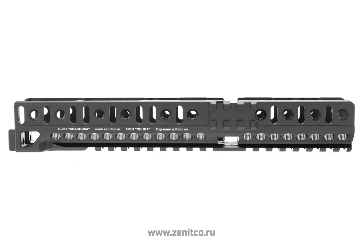 Формирует планку Пикатинни в нижней части цевья, которая позволяет крепить дополнительное оборудование на оружие: подствольные фонари, ЛЦУ, рукоятки, дополнительные кронштейны и тд.