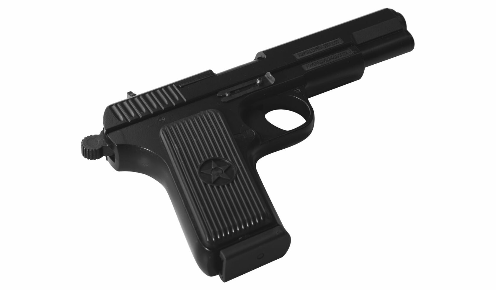 Оптимальный сплав материалов – залог высокой надежности, долговечности, удивительной легкости и удобства в обращении. Он стоек к безжалостной коррозии и износу, предлагая, при этом, весьма демократичную цену. Затвор, ствол и рамка отлиты из сплава ZAMAK. Стальные детали УСМ и корпус магазина внушают уверенность. Пластиковые накладки на рукоятке, выполненные в духе исторического дизайна, придают изделию неподдельную аутентичность. Вес – 920 граммов. Боепитание – сигнальные патроны 10 ТК калибра 5,5 мм.