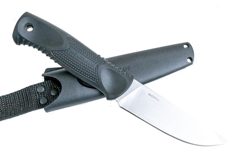 Пластиковые ножны со свободным подвесом, надежно фиксирующие нож и не гремящие при движении.