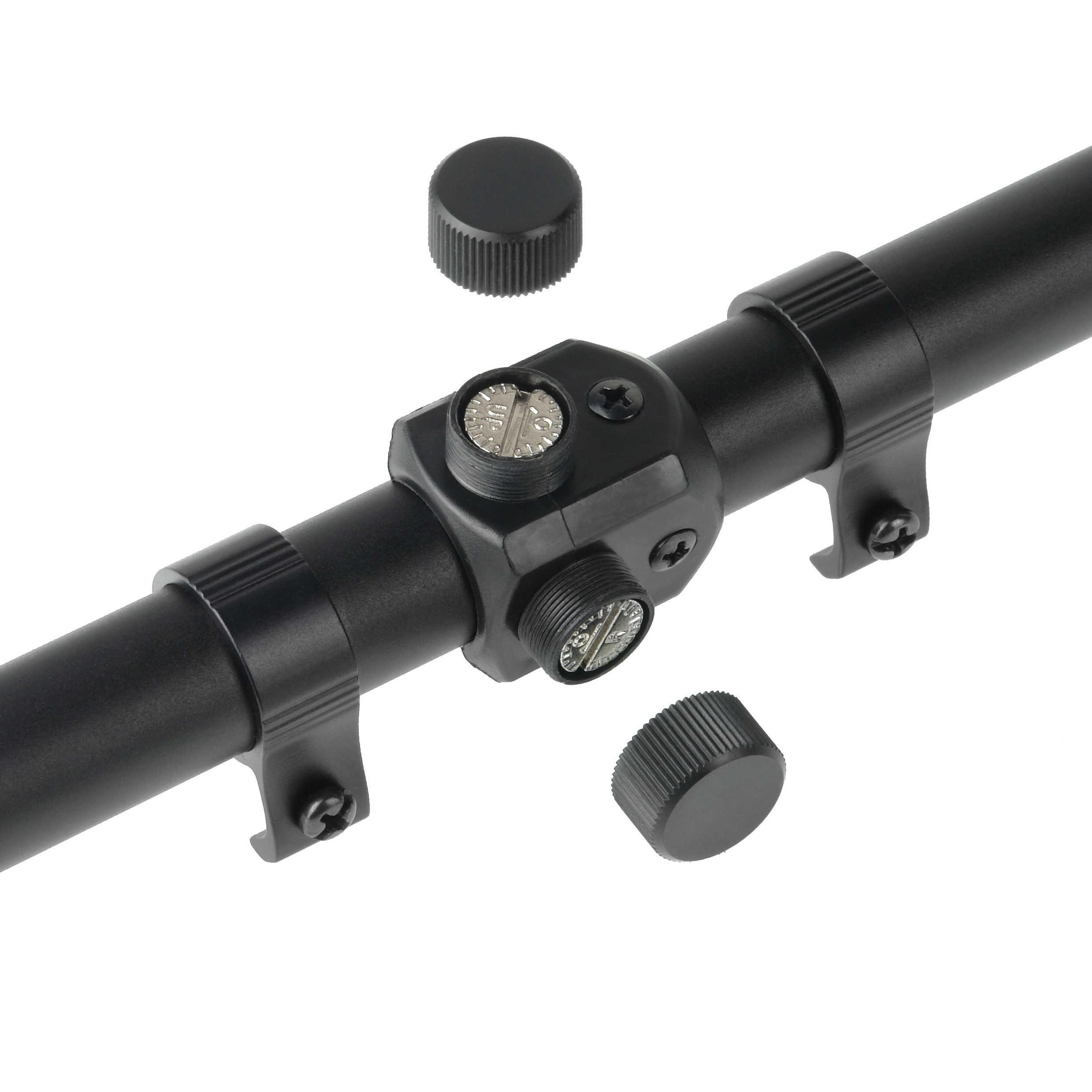 Легкий алюминиевый корпус и стеклянная оптика. Имеется механизм ввода поправок «под монету». Прицел комплектуется металлическими кольцами для установки на крепление типа «ласточкин хвост» 11 мм. Вес прицела — 100 г.