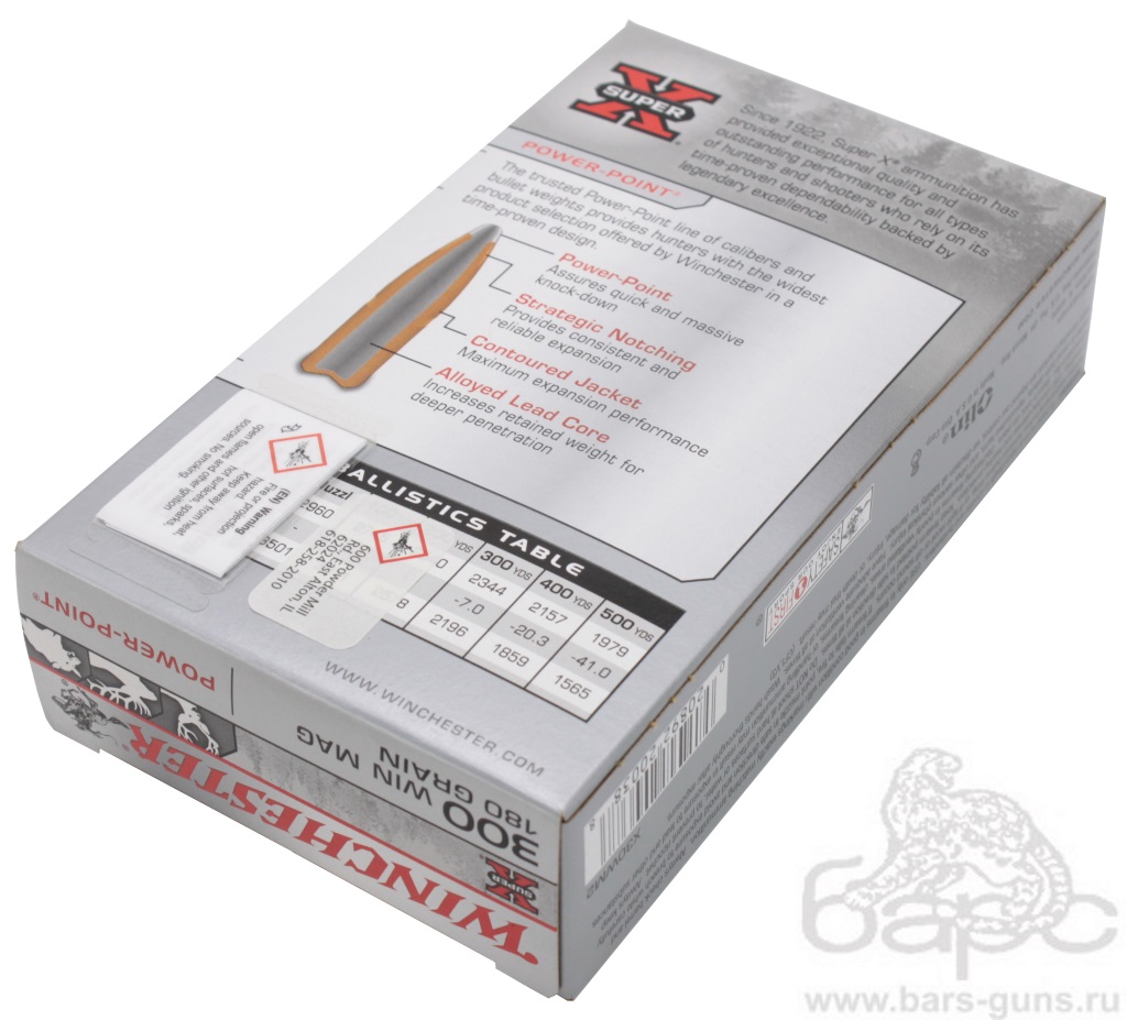 Патрон калибра .300 Winchester Magnum с пулей Power Point разработан для быстрого и эффективного поражения цели. Стратегическая насечка на пуле обеспечивает последовательное и надежное расширение при попадании, а контурная оболочка максимизирует этот эффект. Легированный свинцовый сердечник увеличивает удерживаемый вес пули, обеспечивая более глубокое проникновение.