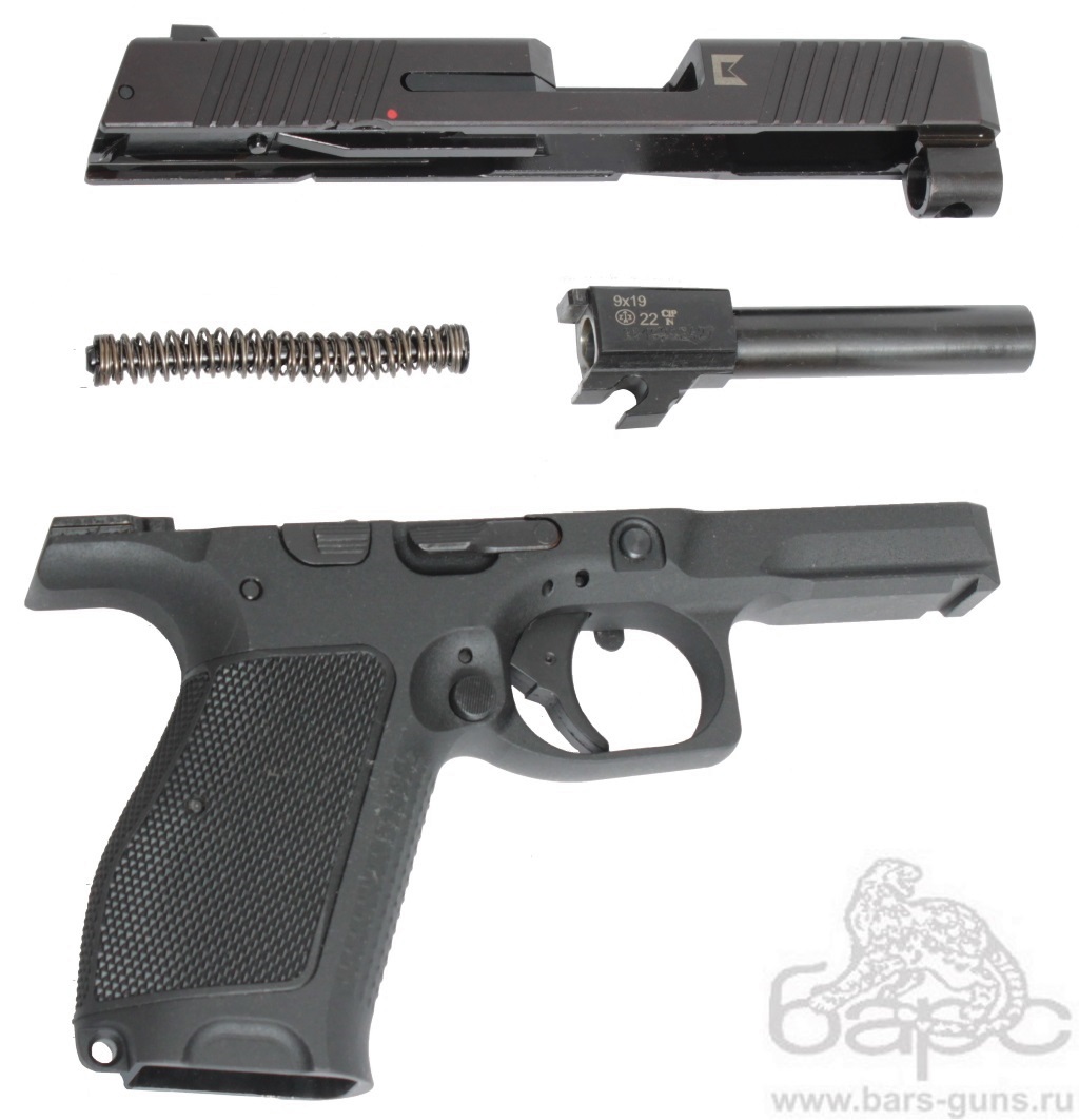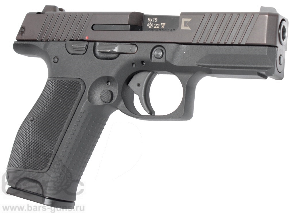 ПЛК отличается от своих аналогов эргономичностью, обеспечиваемой оптимальным углом наклона рукояти, низко расположенным стволом, УСМ ударникового типа и продуманным расположением органов управления.
